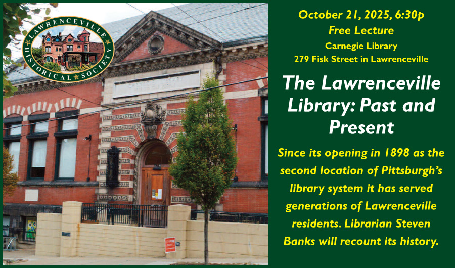 Since its founding in 1982, the Lawrenceville Historical Society (LHS) has been true to its mission of preserving and promoting the rich history of Pittsburgh’s Lawrenceville neighborhood. The LHS has been widely recognized in the historical community for its distinguished public lecture series, its walking tours, publication of an outstanding newsletter, and three books of collected local stories (now out of print). We also contributed to Arcadia Publishing’s Lawrenceville book by Joann Cantrell and James Wudarczyk.